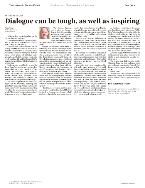 Dialogue can be tough, as well as inspiring Posted byNathan Day WilsonMarch 25, 2018April 26, 2020Posted inText Posts, Uncategorized Share this: Click to share on X (Opens in new window) X Click to share on Facebook (Opens in new window) Facebook Like Loading... Related