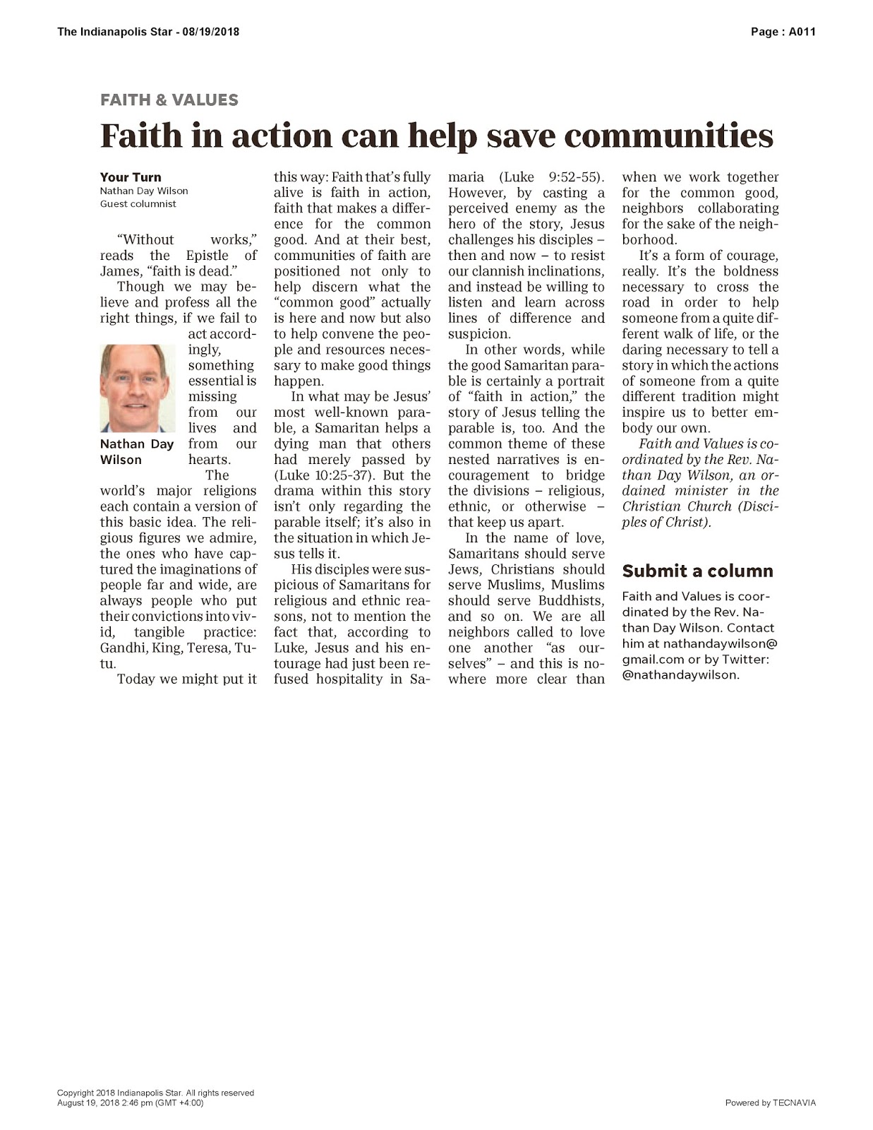 From Indy Star on 19 August 2018 — Faith in action can help save communities Posted byNathan Day WilsonAugust 19, 2018April 26, 2020Posted inText Posts, Uncategorized Share this: Click to share on X (Opens in new window) X Click to share on Facebook (Opens in new window) Facebook Like Loading... Related